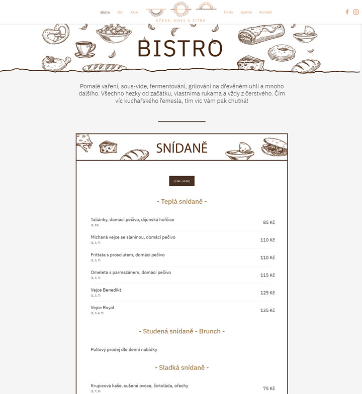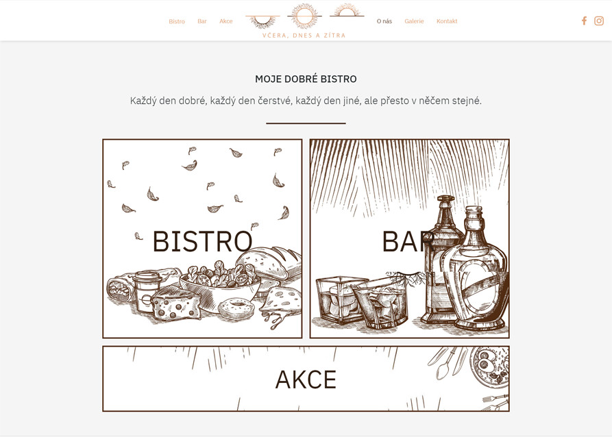 „Včera, dnes a zítra“ - bistro podnik zaměřený na světovou kuchyni, který dbá na kvalitu surovin a vyšší standard příjemného prostředí. Klient neměl žádné webové stránky, proto jsme mu vytvořili nízkoúdržbové webové stránky s jednoduchým vlastním administračním systémem pro správu jídelního/nápojového menu a galerie.